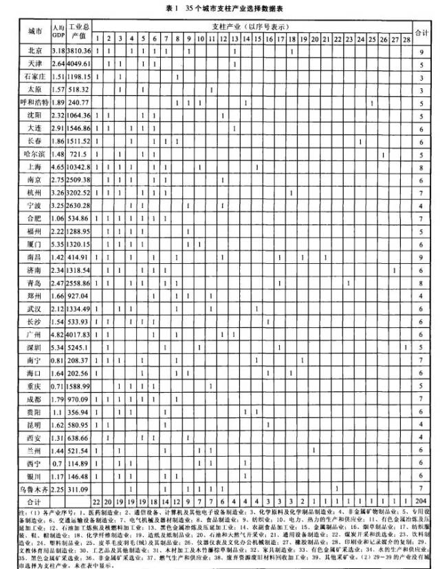 (35个城市支柱产业选择数据表)