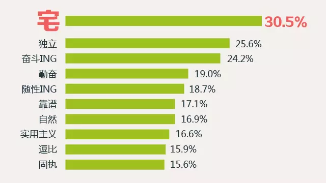 三、30.5%的90后认为自己很宅,62%的90后最喜欢的休闲娱乐方式为宅在家里上网,位列90后自我评价中前三的还有独立和奋斗。