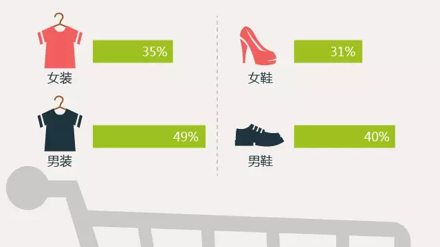 (Resourse:北京大学市场与媒介研究中心2015年)四、90后男生明显比90后女生更愿意在天猫上购买服装和鞋。在天猫上,男装的购买偏好为49%,女装为35%;男鞋的购物偏好为40%,女鞋为31%。