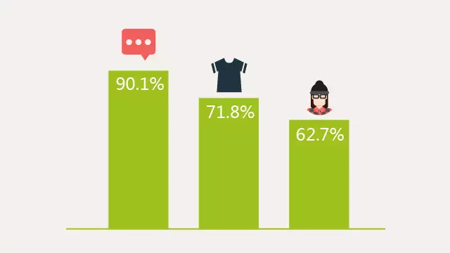 十二、90.1%的90后通过言谈举止评价他人。在与人交往时,71.8%的90后看重穿衣打扮,62.7%的90后重视外貌长相。