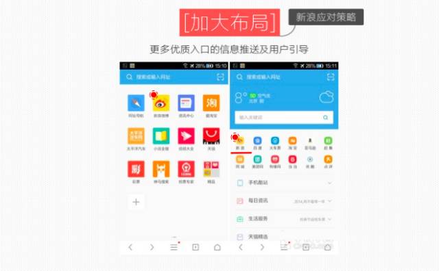 新浪在内容生产上做了更多适应移动网民需求的开发,这些开发的特点是,把今天很多用户感兴趣的内容提炼出来放到新浪产品中,比如新浪“精读”,这个产品打破了传统柱状结构的信息浏览模式,汇聚了用户的评论、视频、微博热议、官方微博的反应等等,一个页面满足了用户最大化了解一个事态的需要。