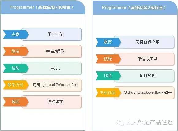 第一,将目标用户标签化,并为各个标签标示权重高低。标签化是为了后期的数据统计分析;标示权重高低则是为了突出某些特定的产品功能和模块,也为了划分用户质量高低,高权重标签对于用户的 Rank 排名有非常大的影响。