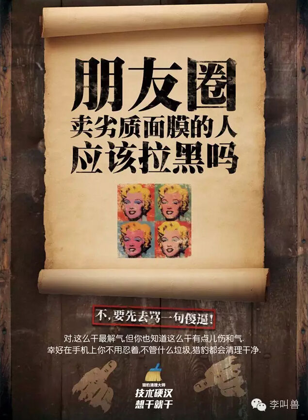 比如之前小马宋在给猎豹清理大师设计文案的时候,就先通过情景唤起了用户对“解气和控制感”的渴望,而清理大师可以给人提供这种控制感(因为可以掌握手机垃圾的生杀大权)