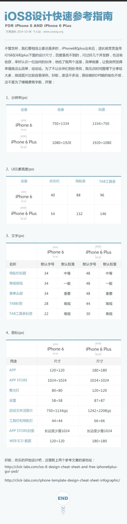 iPhone 6和iPhone 6 Plus的iOS8设计尺寸参考指南