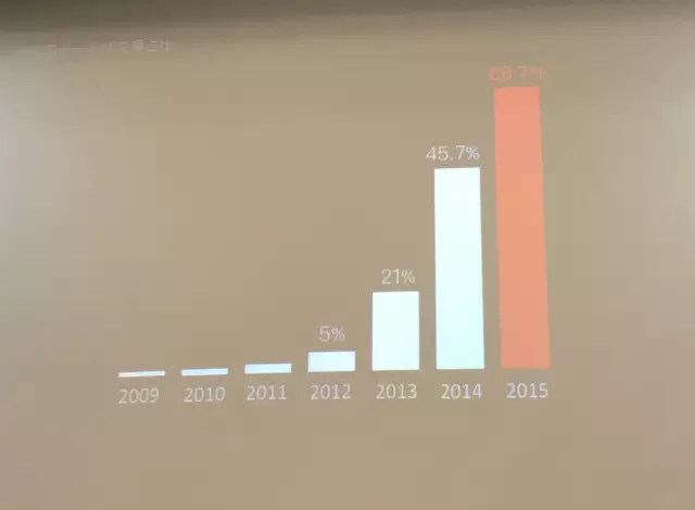 5%,21%,45.7%,68.7%……杨光(花名青云)开场就列举了4个陡升的数字,这是自2012年起历年天猫双十一的无线端销售占比。