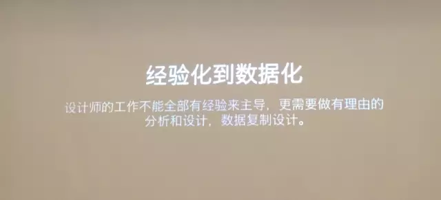 由此,我们就不难引申出一条新的设计策略,要从经验化到数据化 。设计师的工作不能全部有经验来主导,更需要做有理由的分析和设计,数据复制设计。
