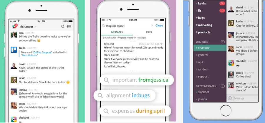 Slack是一款极佳的APP,如上图所示,它实现了上述所有功能。这款APP让用户能够在一个封闭的聊天环境中沟通交流、添加附件,给彼此打标签。同时,这款APP实时更新(如:标记已读),以帮助用户浏览。它还通过通知以及其他一些小动作让用户对聊天内容保持同步。
