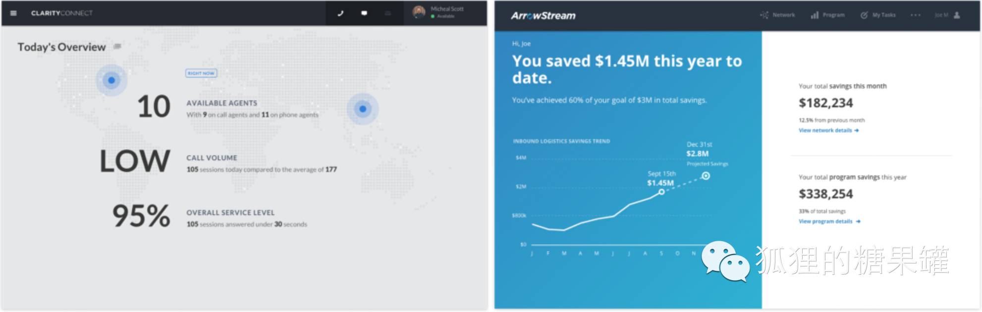 这个图片是从我们最近的两个项目中拿出来的,同样简洁的用文字告诉用户他们需要知道哪些信息,而不是图表或者需要被解释的图形。