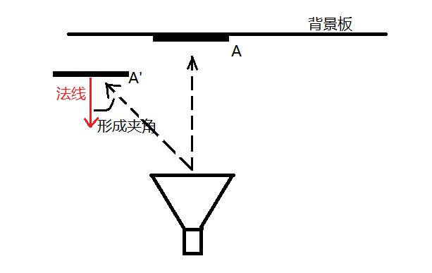 对于组件A而言,如果在空间中遵循传统设计模式,将UI组件完全紧贴在背景板上,即A位置,就无法体现出立体感,而如果像A’一样与背景板之间形成一定空隙,就可以提升空间立体感,同时如果组件的法线可以与用户视线形成一定角度,也可以提升组件空间立体感。
