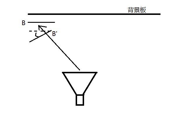 组件B由于与用户距离较远,如果采用水平布置,那么在用户视角中宽度就会变小,那么对于一些视线锁定之类的操作就会影响较大,因此可以将组件向用户方向旋转一定角度,这个角度不一定要使组件法线指向用户,可以是一个较小的固定角度即可,如图中B’,这样就可以在不过度削弱立体感情况下,方便用户使用。