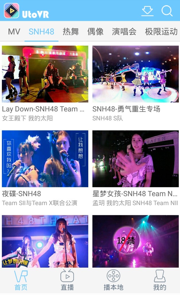 由于VR应用仍然是手机应用,所传统手机应用的UI设计模式对于新兴的手机应用仍然十分有用。一部分VR手机应用在设计时分为常规模式和VR模式,在常规模式下仍然与传统手机应用架构一直,用户可以进行相应功能操作,然后用户在进入VR模式后,一般情况下就没有交互了,以UtoVR为例,用户可以像传统播放软件一样选择自己喜欢的视频资源进行播放,然后在选择VR模式播放以后就可以将VR设备放入眼镜盒,观看VR视频。