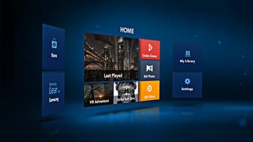 目前在VR模式下UI排布主要遵循两种方式:一是遵循传统UI布置方法,将UI布置在一个平面内,即在三维空间中设置一个用于布置UI的平面,所有UI组件都布置在该平面上,最为典型的就是GearVR的VR影院,所有选项都布置在一个平面。