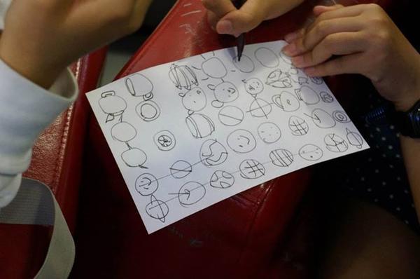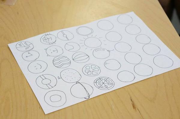 (这是在做头脑风暴前的小练习,画30个圆圈,然后尽可能地把每一个圆圈都赋予一个意义,变成不同的物件,这个联系在很多关于头脑风暴的工作坊里都有,Photo by Tatsuhiro Ohtani,VIA同事)