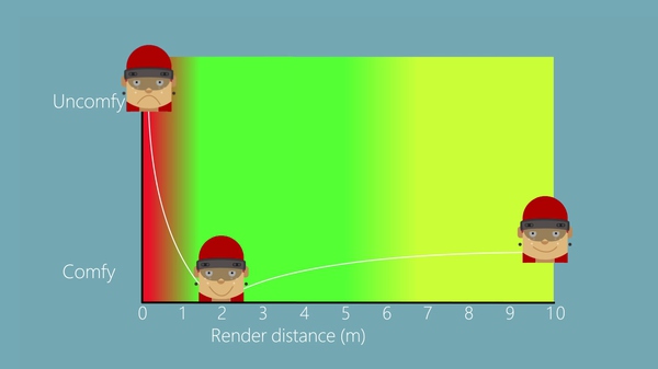 近于1米则会导致聚散冲突(accommodation-vergence conflict),因为左右眼看到的图像差别太大。
