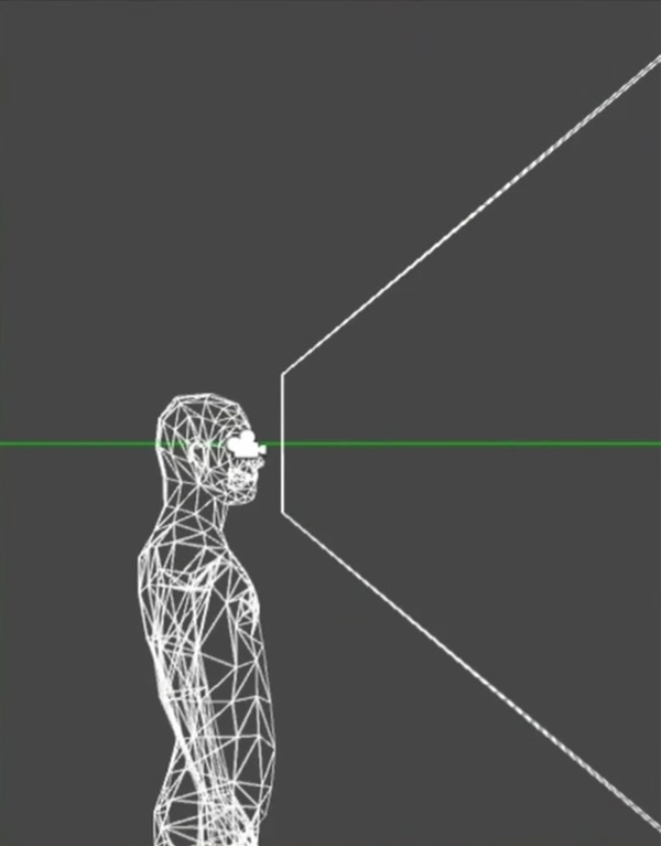 所以这个人站立的高度也有讲究,比如是站着、坐着还是跑着跳着,那两个虚拟相机都有对应的运动。比如用户一般是坐在客厅的沙发上,而不是站在某个空旷的平地的中心。