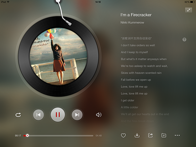 网易云音乐iPad平台自5月22日正式上架后,得到了用户的肯定和支持,但是在性能方面和一些细节方面还不够完善。希望我们的努力和诚意,能够换来更多喜欢音乐的朋友肯定。在未来的日子里,我们将不断地为大家带来更多的惊喜和优质的产品体验。
