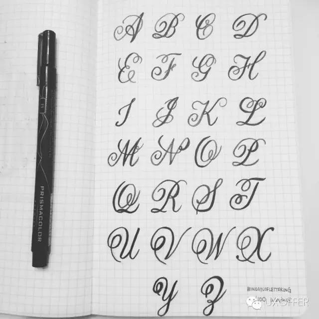 一开始的30天都是临摹为主。有时候我会打开Font Book去临摹现有字体,有时候我会从Pinterest中选择自己喜欢的作品进行再创作。