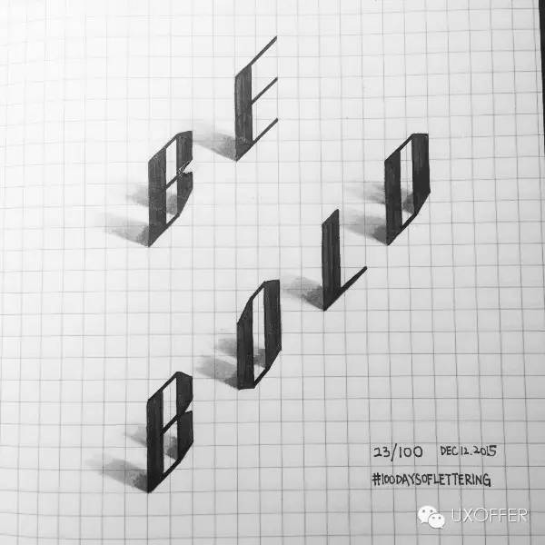 我从小就喜欢画画,每当动笔之后就会沉浸其中不能自拔。这次的字体挑战让我再次找到了单纯地沉寂在创作中的乐趣。有时候我会整天整晚想着下一个练习的主题。有时候我会忘记时间,从晚上11点画到第二天凌晨4点。对创作的热情,尤其是完成一幅作品带来的满足感,是支持我坚持到100天的最大动力。