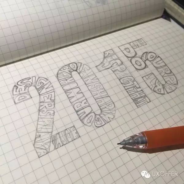 最后30天我开始利用字体练习传递自己的想法。跟以前先确定表现形式的方法不同,这段时间我先确定自己想表达的内容,然后再发散思维寻找合适的表达形式。因为不断收集优秀作品,灵感也越来越丰富,通常确定了当天要表达的主题之后脑海中很快就能想到好些优秀作品的例子。在这些例子的基础上再构思创作,就可以很有创意的把自己的主题表达出来。