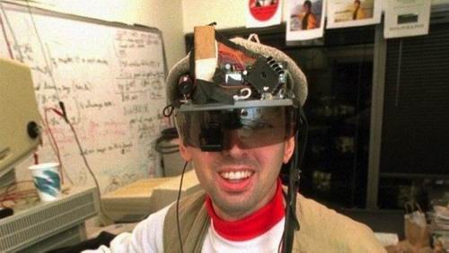 穿戴式设备之“父”和先锋Steve Mann创建了一个笨拙的背包电脑,连接到一个头盔摄像头和取景器。它利用了一个分束器将场景同时发给用户和一个连接电脑的相机,允许叠加实时数据。虽然Mann的现实是增强现实而不是虚拟现实,但他之后的原型改进了Eye Tap并表明虚拟技术不需要笨重和不自然。