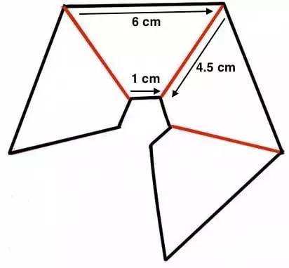 在透明的塑料板上画出这样的图案。如果用手机做投影,可以使用图中所示的长度;如果使用平板电脑,可以根据屏幕尺寸按照这个比例设计出更大的形状。