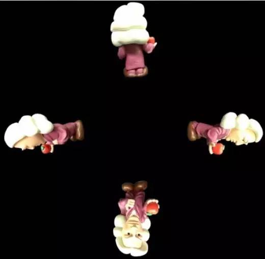 首先,对一个小玩具拍照,要从四个方向拍摄。注意拍摄的时候保持距离一致,避免拍到的4张照片大小不一。