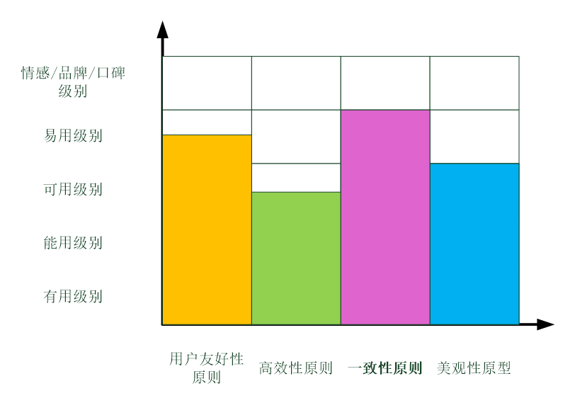 四个设计原则与设计的五个层次可以构成一个矩阵,在不同层次上设计原则体现的程度不一样。如果类比软件团队能力成熟度模型,可以把这个矩阵称为用户体验设计能力成熟度模型。