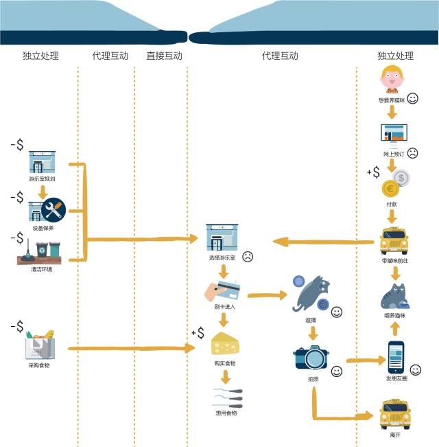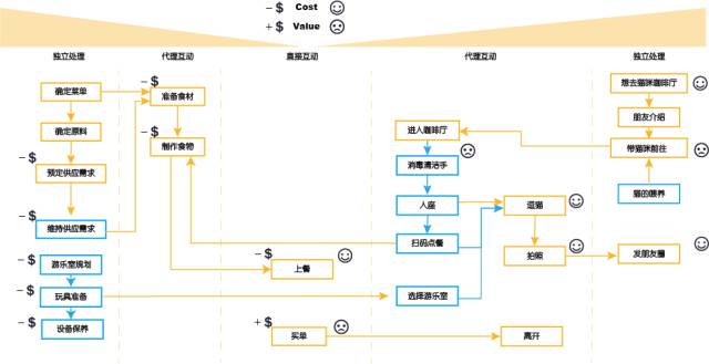 下面这张是我们归纳的喵呜咖啡厅的服务蓝图: