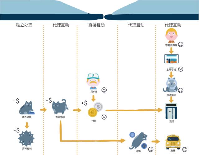 相反的就是把用户做的事情都交给商家做