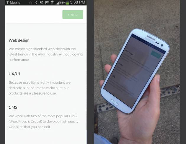 使用足够的对比度在手机上显得尤其重要:因为用户可能在户外使用是,阳光的照耀会降低其对比效果。
