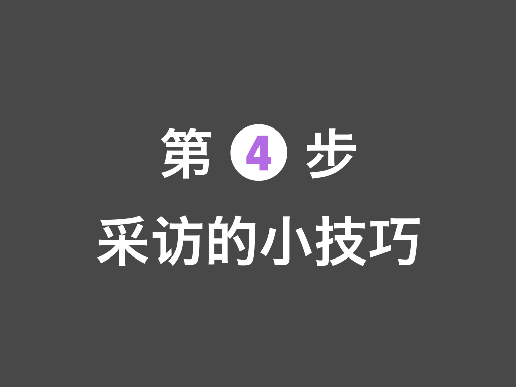 3)尽可能用即时互动的方式去做采访:比如电话或者 skype. 或者干脆面对面观察用户的使用情况。不要用 email 的方式。因为你需要根据开放式问题的回答继续追问许多“为什么是这样”,所以邮件的形式非常不利于你的挖掘工作。而且在电话采访的过程中,一个小窍门是,适当留出一些空白和安静的时间。被采访人往往会因为想要避免安静的尴尬而和你多说一些他们其他的想法,这些都是邮件的形式做不到的。