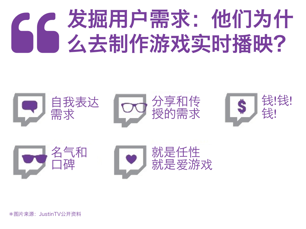 JustinTV 境遇也是如此,在增长了一段时间以后,它在提供 24 小时直播这一方面成为了一个优秀的产品和领导者,但是想要再去吸引更大的用户群体,他们无疑需要转型,或者加入新的功能。这时用户调研成了非常重要的新起点。