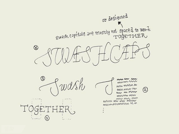 花式大写?在字体设计中这并不是很重要的,但是很有趣。并不是每一种字体都有花式大写,但是花式大写是最常见的,当然也有花式小写、花式首字、花式结尾等。 有时候你想要把一行全部用大写字母。你可以使用罗马大写字母,但是最好的办法是选择专为此而设计的小型大写字母。罗马大写字母虽然不是为此设计,但是用也不会有问题。花式大写也可以。花式大写大部分是用来给你的设计额外的惊喜。花式大写可以后面跟小写字母(最好),或者用于首字母(次好),但是千万花式和花式不要用在一起,也可以把花式大写和正规的罗马大写用在一起。