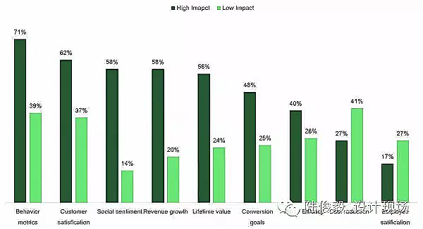 这题则显示,高影响力的团队也让 UX 反映在更多公司内部的指标上。如客户满意度(Customer satisfaction)、所得成长(Revenue growth)、顾客终身价值(Customer lifetime value)等。而在 UX 团队影响力低落的组织中,UX 与成本缩减(Cost reduction)及员工满意度(Customer Satisfaction)有特别显著的挂勾。