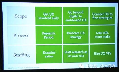 从数字拓展到点对点的整体UX。尽早让 UX 参与其中。 - UX流程