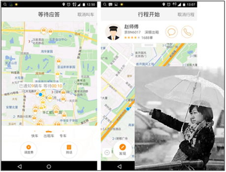 - 观察+访谈+推测,这个方法就真的很考验一个研究员的功力了,通过观察用户的行为,做出一些假设,然后再跟用户做访谈进行假设验证,对于一些用户不方便说出来的心理需求,进行推测,从而得到相对比较确信的答案。虽然这种方法仍属于推测,但是可以先据此做出产品来,通过用户使用之后的反馈,进行修正,不断完善。举个栗子,大家现在常用的滴滴打车,在呼出——等待司机应答之间是有短则十几秒、长则几分钟的等待期的,而滴滴在这个等待期做了一个非常好的设计:用户在这个等待期会发现手机上显示自己所在位置的周边会有很多出租车向自己靠拢!试想一下:一个大雨的傍晚,你刚下班,饥寒交迫,在路边打车,在焦急等待时看到有这么多出租车在周围准备接你,该有多大的心理安慰作用呀!这个设计正是抓准了用户在那个场景之下的真实心理需求,据说这个设计在早期的滴滴中是没有的,是通过对用户的研究不断改进而来的。