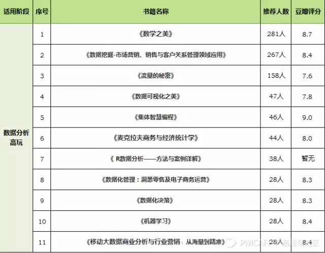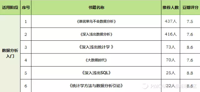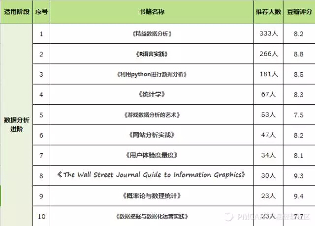 想学数据分析,看看这27本书 由 宝珠 · 发布日期 2017-03-10 · 已更新 2017-05-22 整理来源:pmcaff产品经理社区 一、入门篇(6本) 二、进阶篇(10本) 三、高玩篇(11本) 书籍来源:pmcaff社区 推荐阅读 数据获取/分析/渠道 精选文章(58篇)>> 数据界面如何做到可视化和高效? 腾讯前数据总监:移动互联网应用分析指标 如何设计数据驱动的界面 大数据下的用户分析及用户画像 大数据如何驱动产品和运营?数据处理流程、分析方法和实战案例