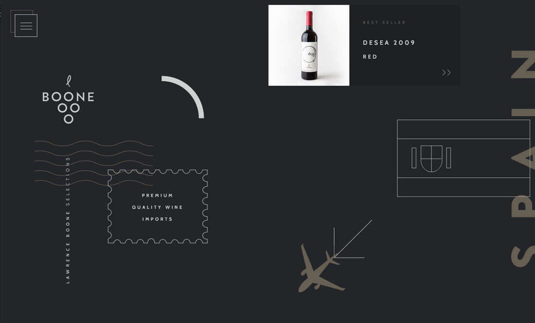 Boone Selections 这个网站就使用各种图片展现了葡萄酒从生产到运输的流程,借助图标来驱动整个视觉,引导用户不停的滚动浏览。随着用户的滚动,图标和各种元素之间不断地进行互动。