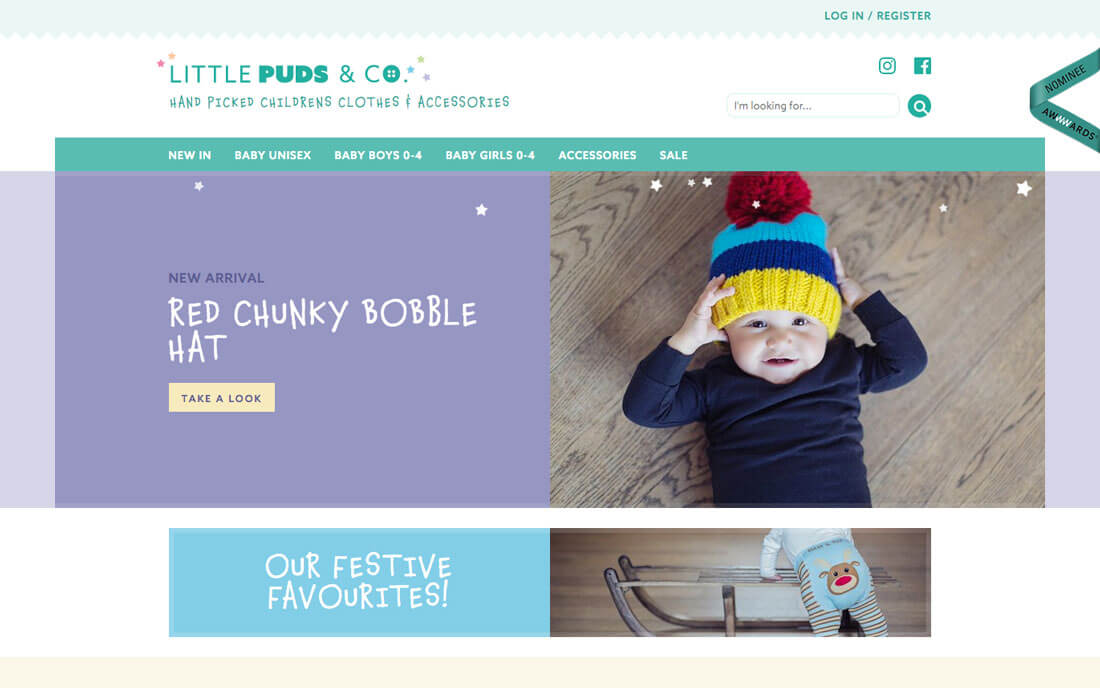 Little Puds & Co. 的网站就是这么做的。这个品牌色本身是玛卡龙绿,为了让网站的整体风格保持一致,设计师将社交媒体链接和搜索按钮的色彩都调整成了品牌色,这样保持了视觉的一致性,又不会质疑图标本身的功能。