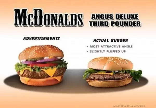 众所周知,麦当劳肯德基等快餐的海报上总会印出饱满诱人的汉堡形象,即使顾客心里知道广告图片与现实产品之间的差异,但他们仍然会有去购买的欲望。
