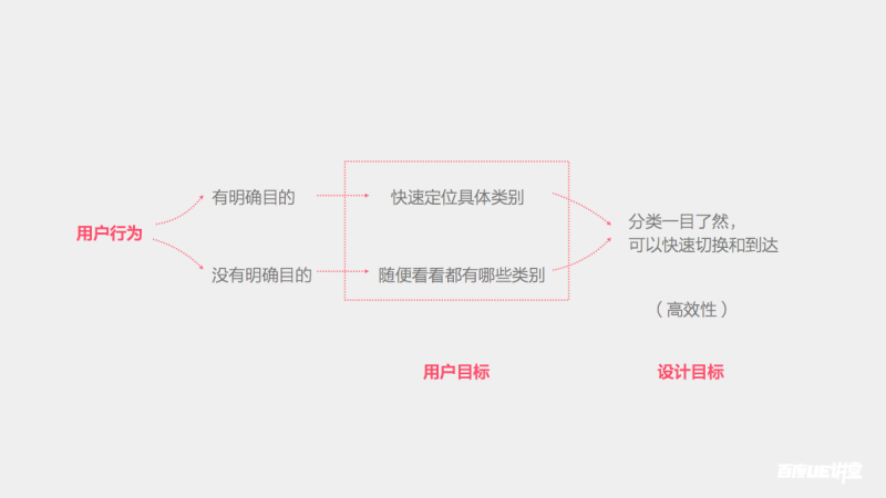 这两类用户虽然行为目的不同,但是对于我们来说,设计目标是一致的,就是都需要一目了然的分类,并且可以快速的切换和到达,也就是高效性的设计。