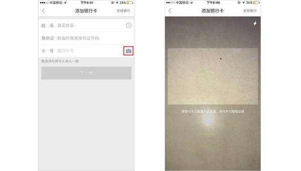 e、使用OCR扫描银行卡、身份证等替代手动输入信息;