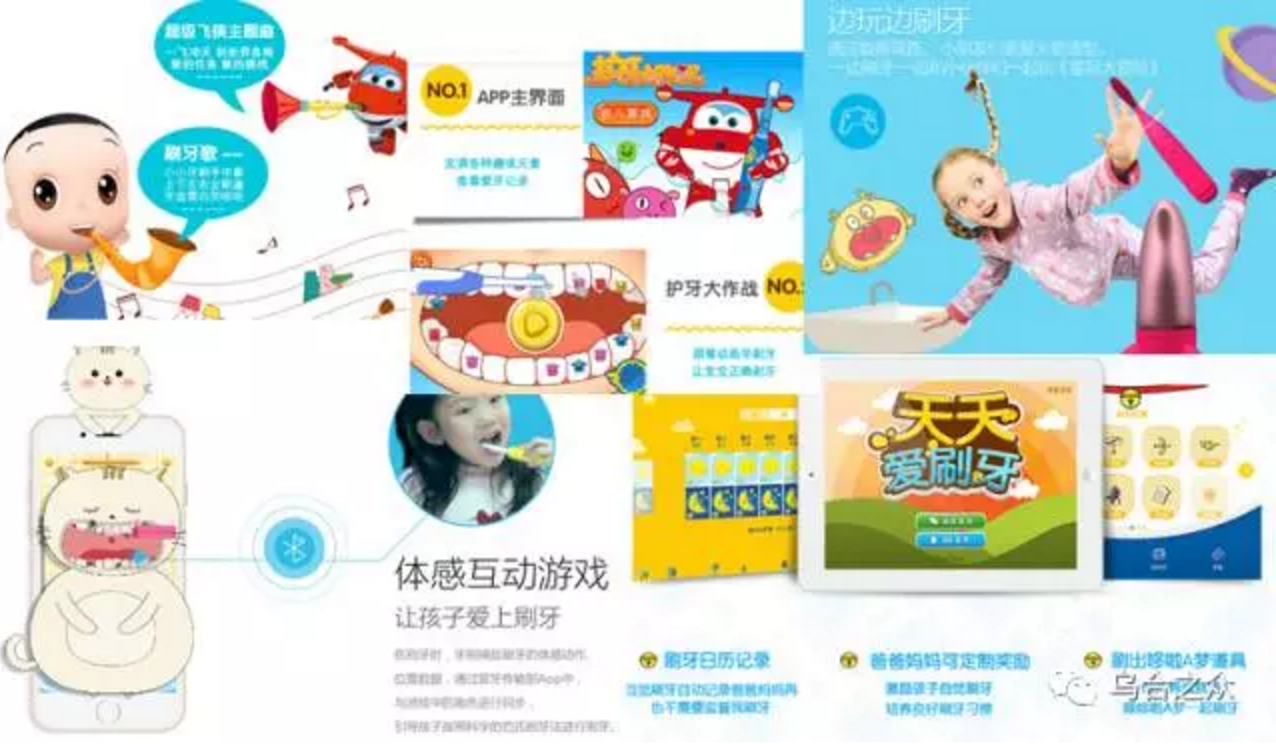 (2)更重要的是,为了吸引、鼓励儿童刷牙,这些产品设计了App,可以实现体感互动游戏、亲子互动、监测刷牙区域、刷牙日历管理等功能,试图去解决上文所述的缺少乐趣不喜欢刷牙、注意力不集中不能坚持刷牙、缺少引导刷牙方式不科学、缺少有效监测无法管理刷牙情况等“用户痛点”。从这些方面来评估,这些产品相对于仅仅强调安全性材质等硬件条件的普通幼儿牙刷来讲,功能更加实用、更加突出。