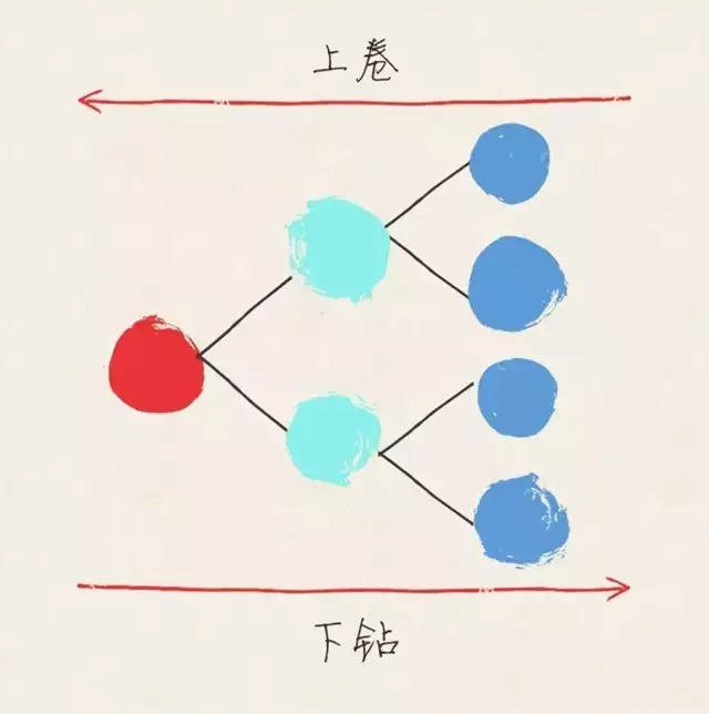 所谓下钻,就是在分析指标的变化时,按一定的维度不断的分解。比如,按地区维度,从大区到省份,从省份到城市,从省市到区。所谓上卷就是反过来。随着维度的下钻和上卷,数据会不断细分和汇总,在这个过程中,我们往往能找到问题的根源。