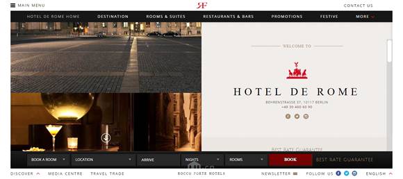 当然,最有效的网站 keep other elements of design simple(http://www.spinxdigital.com/blog/what-makes-flat-web-design-exotic/) 允许所有的运动。 然而,你还是会给用户带来感觉超载的风险。网站 Hotel de Rome(上图)是专业执行滚动的完美示例。 酒店信息包含在右侧列中,其中包含其他可点击元素,而左侧滚动显示富有光泽的照片。 用户掌控着大局,两侧的页面均可浏览。