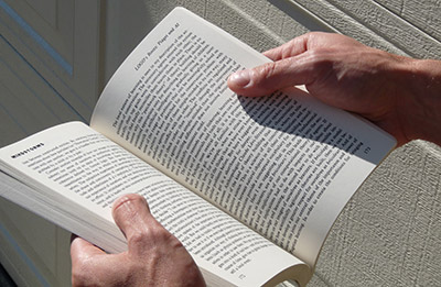 注意你是如何知道你在书中的位置的,是通过每只手感觉到的重量分布,以及你手指之间的页面厚度。翻一页,注意你如何知道你是否把两页纸放在了一起,当你摩擦他们的时候,他们就会分开。
