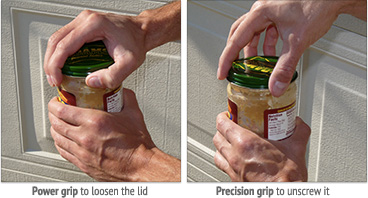 假设我给你一个打开的罐子。你将会在两个不同的握法之间切换: