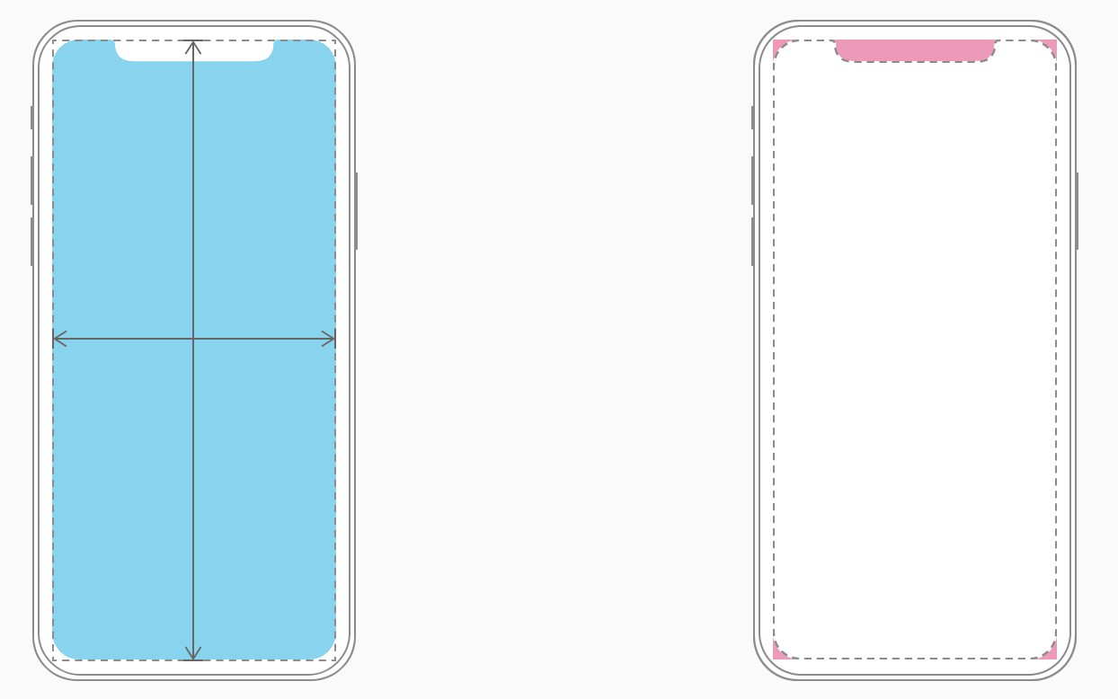 相对于4.7英寸的iPhone而言iPhone X具有不同的屏幕宽高比。因此,4.7英寸iPhone上的全屏设计稿在iPhone X上展现时会出现被剪切或按宽度适配的情况。