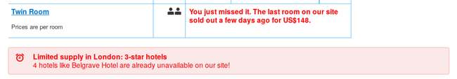 - “快卖完了,我们网站上只剩下3间房间啦!”