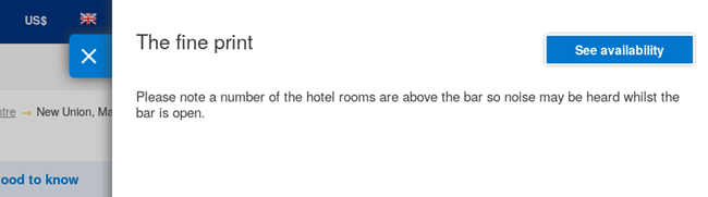 “请注意,酒吧开放的时候,酒店的一些房间可能会有噪声”被轻描淡写提及;但事实上这音乐震耳欲聋,连地板都震起来了,并且这酒吧从早开到晚上9点。但为什么这样的提示藏匿于细则里,而不是一个大大红色警示?